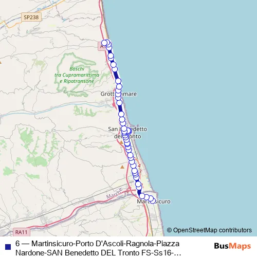 Bus 6 - Martinsicuro-Porto D'Ascoli-Ragnola-Piazza Nardone-SAN Benedetto DEL Tronto FS-Ss16-Grottammare-Ponte Menocchia: Full Schedule in San Benedetto del Tronto