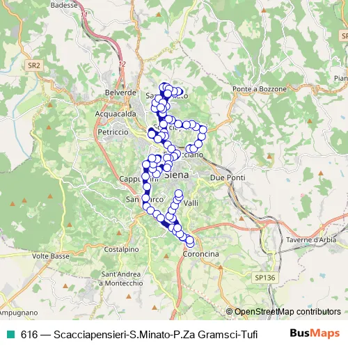Bus 616 - Scacciapensieri-S.Minato-P.Za Gramsci-Tufi: Full Schedule in Siena
