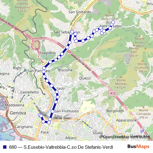 Bus 680 - S.Eusebio-Valtrebbia-C.so De Stefanis-Verdi: Full Schedule in Genoa
