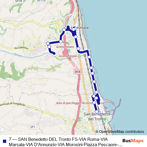 Start Spa 7 SAN Benedetto DEL Tronto FS-VIA Roma-VIA Marsala-VIA D'Annunzio-VIA Morosini-Piazza Pescaore-Lungomare-VIA Pertini-Ss16-Grottammare-Cuprense-Cimitero-S.Martino-Rotatoria-Piscina Bus