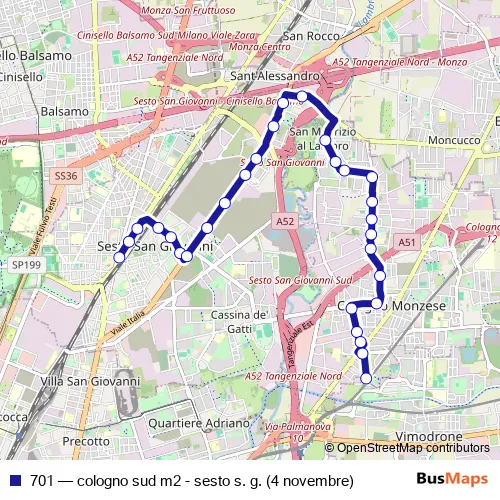 Click here to view the nearest 701 - cologno sud m2 - sesto s. g. (4 novembre) bus stop.