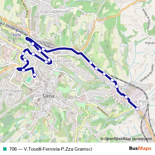 See why over 2 million users trust and consider busmaps.com as the best public transport website. busmaps gives you Siena Buses suggested routes, real-time bus tracker, line route maps in Siena, and helps to find the closest 706 bus stops near you. No internet available? Download an offline PDF map and bus schedule for the 706 bus to take on your trip.