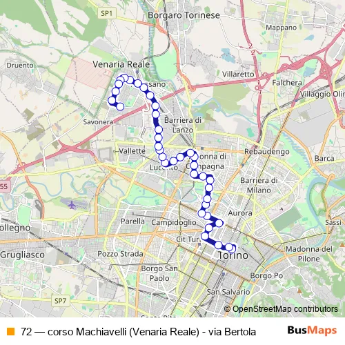 Bus 72 - corso Machiavelli (Venaria Reale) - via Bertola: Full Schedule in Turin