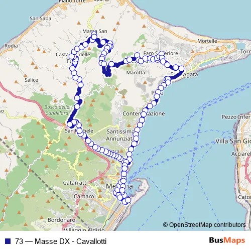 See why over 2 million users trust and consider busmaps.com as the best public transport website. busmaps gives you Messina Buses suggested routes, real-time bus tracker, line route maps in Messina, and helps to find the closest 73 bus stops near you. No internet available? Download an offline PDF map and bus schedule for the 73 bus to take on your trip.