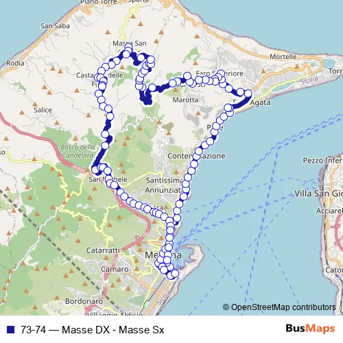 See why over 2 million users trust and consider busmaps.com as the best public transport website. busmaps gives you Messina Buses suggested routes, real-time bus tracker, line route maps in Messina, and helps to find the closest 73-74 bus stops near you. No internet available? Download an offline PDF map and bus schedule for the 73-74 bus to take on your trip.