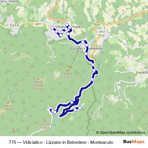 Bus 775 - Vidiciatico - Lizzano in Belvedere - Monteacuto in Lizzano in Belvedere: Stops & Timetable