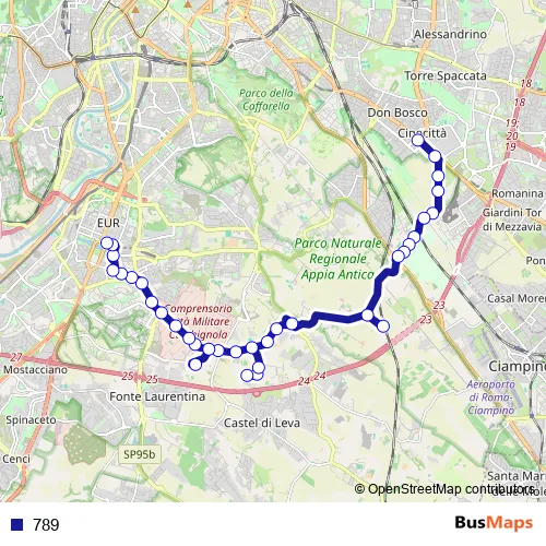 See why over 2 million users trust and consider busmaps.com as the best public transport website. busmaps gives you Rome Buses suggested routes, real-time bus tracker, line route maps in Rome, and helps to find the closest 789 bus stops near you. No internet available? Download an offline PDF map and bus schedule for the 789 bus to take on your trip.