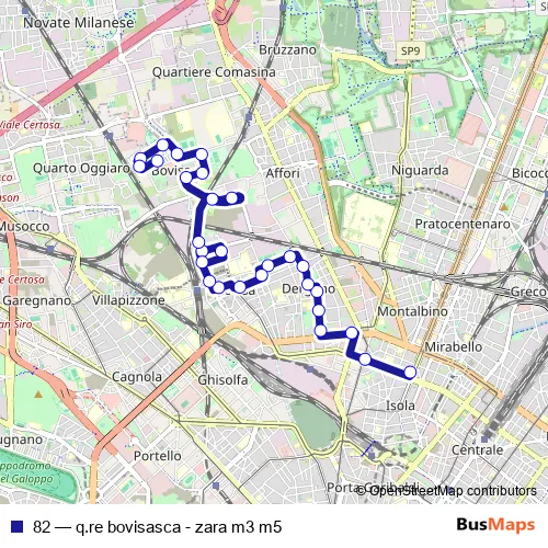 Bus 82 - q.re bovisasca - zara m3 m5: Full Schedule in Milan