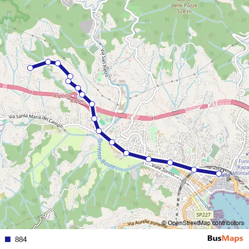 The first stop of the 884 bus route is Rapallo capolinea and the last stop is Savagna capolinea. 884 is operational during tutti i giorni.
