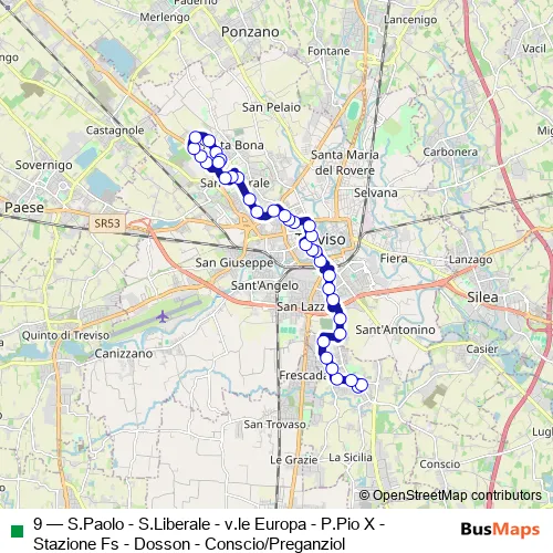 9 (S.Paolo - S.Liberale - v.le Europa - P.Pio X - Stazione Fs - Dosson - Conscio/Preganziol) Bus in Treviso