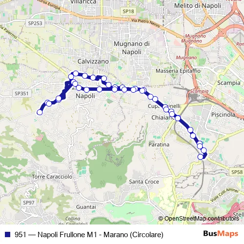 See why over 2 million users trust and consider busmaps.com as the best public transport website. busmaps gives you Marano di Napoli Buses suggested routes, real-time bus tracker, line route maps in Marano di Napoli, and helps to find the closest 951 bus stops near you. No internet available? Download an offline PDF map and bus schedule for the 951 bus to take on your trip.