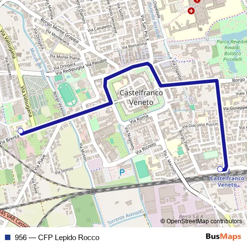 See why over 2 million users trust and consider busmaps.com as the best public transport website. busmaps gives you Castelfranco Veneto Buses suggested routes, real-time bus tracker, line route maps in Castelfranco Veneto, and helps to find the closest 956 bus stops near you. No internet available? Download an offline PDF map and bus schedule for the 956 bus to take on your trip.
