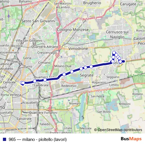 Bus 965 - milano - pioltello (lavori): Full Schedule in Pioltello