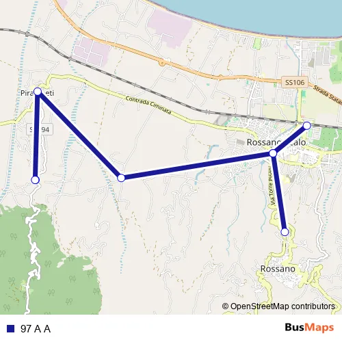 See why over 2 million users trust and consider busmaps.com as the best public transport website. busmaps gives you Rossano Buses suggested routes, real-time bus tracker, line route maps in Rossano, and helps to find the closest 97 A A bus stops near you. No internet available? Download an offline PDF map and bus schedule for the 97 A A bus to take on your trip.