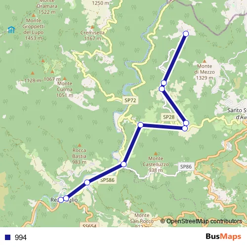 See why over 2 million users trust and consider busmaps.com as the best public transport website. busmaps gives you Rezzoaglio Buses suggested routes, real-time bus tracker, line route maps in Rezzoaglio, and helps to find the closest 994 bus stops near you. No internet available? Download an offline PDF map and bus schedule for the 994 bus to take on your trip.