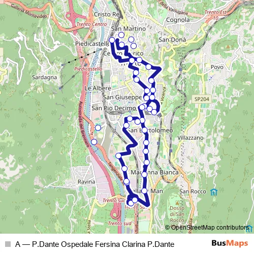 Bus A - P.Dante Ospedale Fersina Clarina P.Dante in Trento: Stops & Timetable