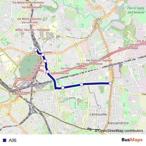 See why over 2 million users trust and consider busmaps.com as the best public transport website. busmaps gives you Rome Buses suggested routes, real-time bus tracker, line route maps in Rome, and helps to find the closest A06 bus stops near you. No internet available? Download an offline PDF map and bus schedule for the A06 bus to take on your trip.