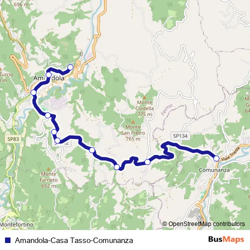 Amandola-Casa Tasso-Comunanza bus Route Map