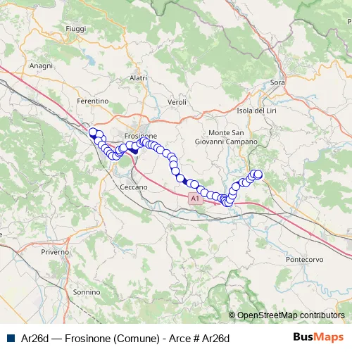 See why over 2 million users trust and consider busmaps.com as the best public transport website. busmaps gives you Frosinone Buses suggested routes, real-time bus tracker, line route maps in Frosinone, and helps to find the closest Ar26d bus stops near you. No internet available? Download an offline PDF map and bus schedule for the Ar26d bus to take on your trip.