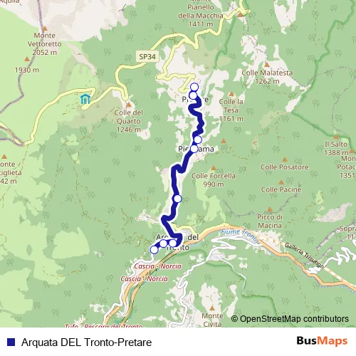 Arquata DEL Tronto-Pretare bus Route Map