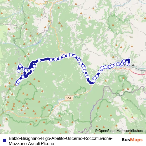 Additional information: Balzo-Bisignano-Rigo-Abetito-Uscerno-Roccafluvione-Mozzano-Ascoli Piceno has 52 stops and the total trip duration