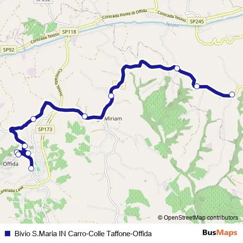 Additional information: Bivio S.Maria IN Carro-Colle Taffone-Offida has 11 stops and the total trip duration for this route is approximately 15 minutes.