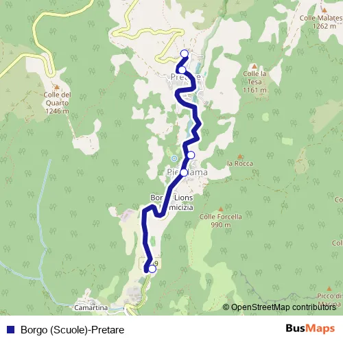 Additional information: Borgo (Scuole)-Pretare has 5 stops and the total trip duration for this route is approximately 10 minutes.
