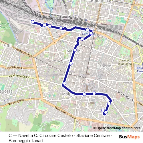 Bus C - Navetta C: Circolare Cestello - Stazione Centrale - Parcheggio Tanari Schedule in Bologna