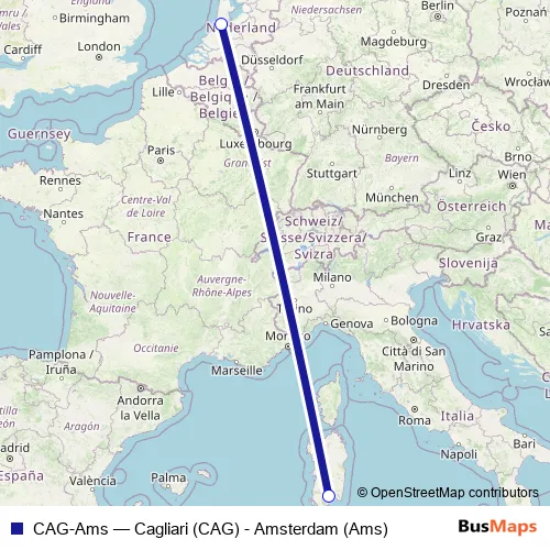 Click here to view the nearest CAG-Ams - Cagliari (CAG) - Amsterdam (Ams) air stop.