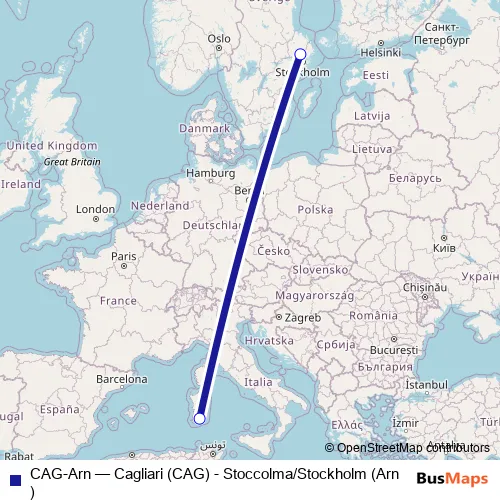 Click here to view the nearest CAG-Arn - Cagliari (CAG) - Stoccolma/Stockholm (Arn) air stop.