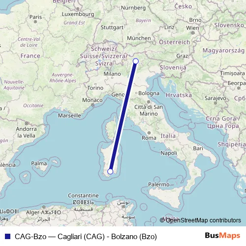 Click here to view the nearest CAG-Bzo - Cagliari (CAG) - Bolzano (Bzo) air stop.