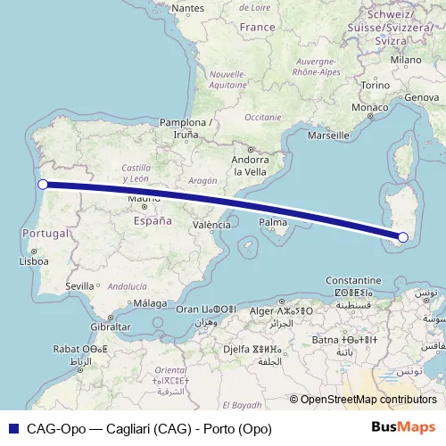 Click here to view the nearest CAG-Opo - Cagliari (CAG) - Porto (Opo) air stop.