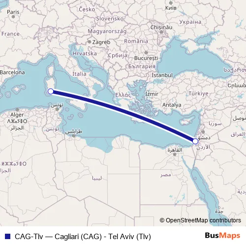 Click here to view the nearest CAG-Tlv - Cagliari (CAG) - Tel Aviv (Tlv) air stop.