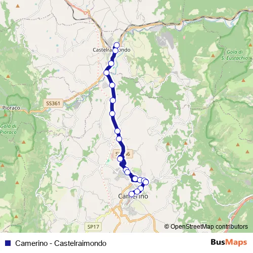 Camerino - Castelraimondo bus Route Map