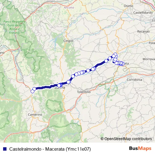 Castelraimondo - Macerata (Ymc11e07) bus Route Map