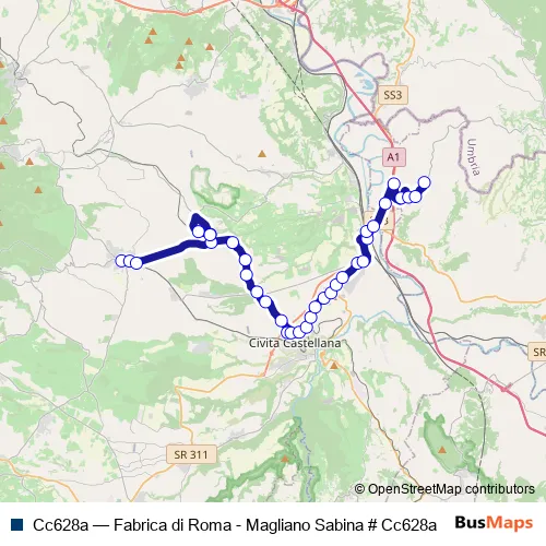 Click here to view the nearest Cc628a - Fabrica di Roma - Magliano Sabina # Cc628a bus stop.