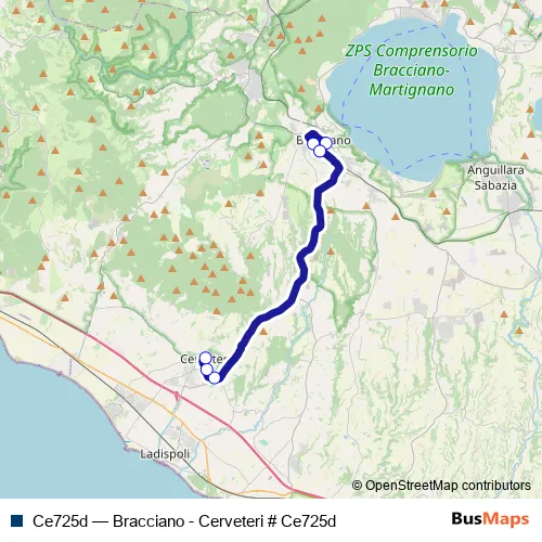 Bus Ce725d - Bracciano - Cerveteri # Ce725d: Full Schedule in Bracciano