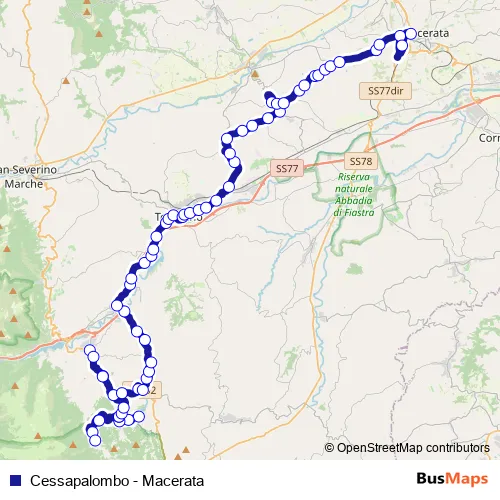 Additional information: Cessapalombo - Macerata has 64 stops and the total trip duration for this route is approximately 90 minutes.