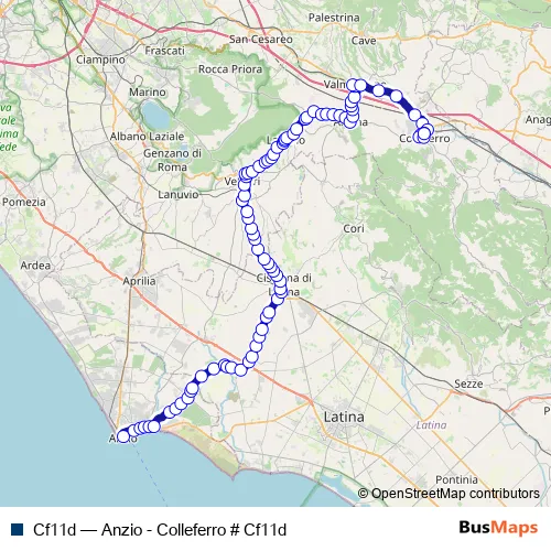 See why over 2 million users trust and consider busmaps.com as the best public transport website. busmaps gives you Cisterna di Latina Buses suggested routes, real-time bus tracker, line route maps in Cisterna di Latina, and helps to find the closest Cf11d bus stops near you. No internet available? Download an offline PDF map and bus schedule for the Cf11d bus to take on your trip.