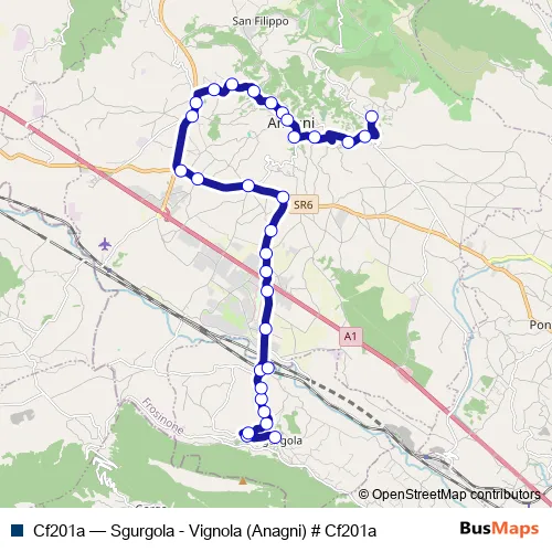 See why over 2 million users trust and consider busmaps.com as the best public transport website. busmaps gives you Anagni Buses suggested routes, real-time bus tracker, line route maps in Anagni, and helps to find the closest Cf201a bus stops near you. No internet available? Download an offline PDF map and bus schedule for the Cf201a bus to take on your trip.