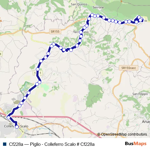 See why over 2 million users trust and consider busmaps.com as the best public transport website. busmaps gives you Paliano Buses suggested routes, real-time bus tracker, line route maps in Paliano, and helps to find the closest Cf228a bus stops near you. No internet available? Download an offline PDF map and bus schedule for the Cf228a bus to take on your trip.