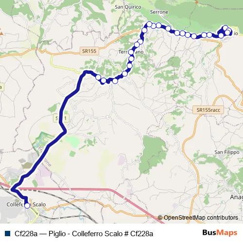 The first stop of the Cf228a bus route is Piglio | Convento San Lorenzo # f5996 and the last stop is
