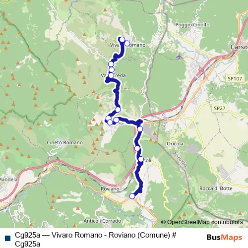 Bus Cg925a - Vivaro Romano - Roviano (Comune) # Cg925a: Full Schedule in Riofreddo