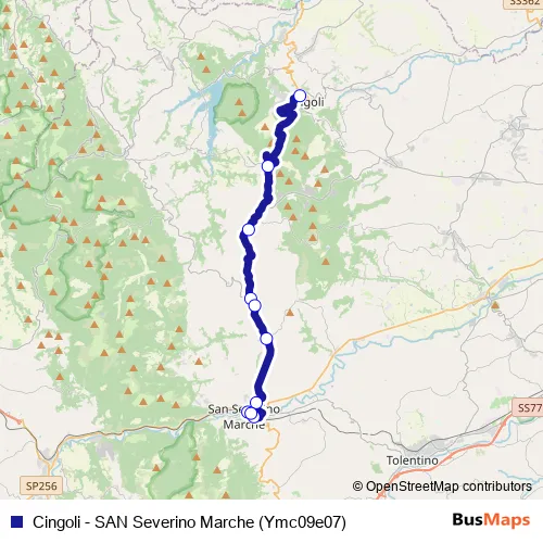 Cingoli - SAN Severino Marche (Ymc09e07) bus Route Map