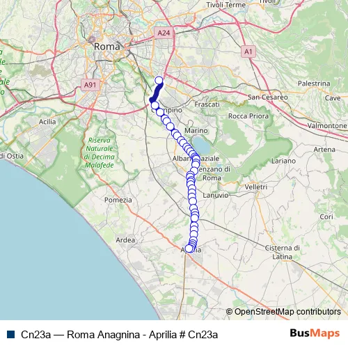 Click here to view the nearest Cn23a - Roma Anagnina - Aprilia # Cn23a bus stop.