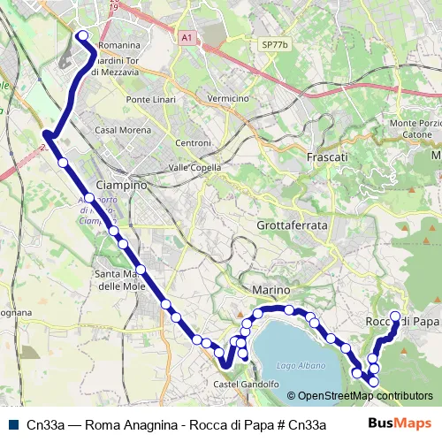 See why over 2 million users trust and consider busmaps.com as the best public transport website. busmaps gives you Castel Gandolfo Buses suggested routes, real-time bus tracker, line route maps in Castel Gandolfo, and helps to find the closest Cn33a bus stops near you. No internet available? Download an offline PDF map and bus schedule for the Cn33a bus to take on your trip.