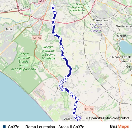 Bus Cn37a - Roma Laurentina - Ardea # Cn37a: Full Schedule in Pomezia