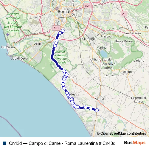 Click here to view the nearest Cn43d - Campo di Carne - Roma Laurentina # Cn43d bus stop.