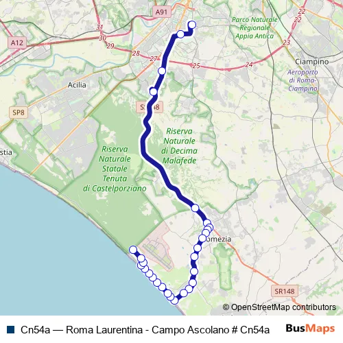 Bus Cn54a - Roma Laurentina - Campo Ascolano # Cn54a Schedule in Pomezia