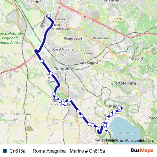 Click here to view the nearest Cn615a - Roma Anagnina - Marino # Cn615a bus stop.